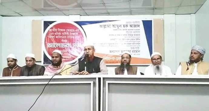 জাতীয় শিক্ষক ফোরাম এর কেন্দ্রীয় সভাপতি অধ্যাপক মাহবুবুর রহমান বলেন, শিক্ষা মানুষের মৌলিক অধিকার। শিক্ষার মাধ্যমে মনুষ্যত্ব বিকাশ লাভ করে। শিক্ষার সাথে ধর্ম ওতোপ্রতোভাবে জড়িত। ধর্মীয় শিক্ষার মাধ্যমে মানুষ তার স্রষ্টার পরিচয় লাভ করে। কিন্তু দুঃখজনক হলেও সত্য যে বর্তমান প্রজন্মকে সুকৌশলে ধর্মহীনভাবে গড়ে তোলা হচ্ছে। শিক্ষা সিলেবাসে ধর্মীয় অনুভূতিতে আঘাত দেয় এমন বিষয়বস্তু অন্তর্ভুক্ত […]